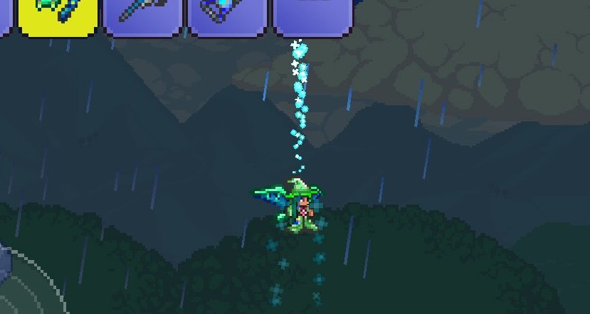 神圣地形产出的水晶碎块可以合成水晶镖,这类飞镖不受重力影响,能在墙体与敌人之间多次反弹,还会自动追踪附近目标,狭小地牢、入侵事件、多部位集群BOSS都能发挥碾压输出,是困难模式清群怪最优选择,搭配飞镖步枪连发可以快速清空大范围怪物;实战搭配上,群怪刷怪优先水晶镖,BOSS破防优先灵液镖,地面小怪压制用诅咒镖,前期开荒全程用毒镖过渡,搭配箭袋、弹药匣配件还能大幅减少弹药消耗,延长持续作战时长。