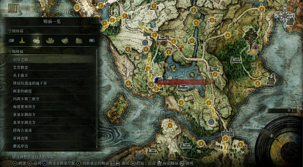 探索地图时首先要明确主线推进的合理顺序,从宁姆格福新手村开始熟悉基础操作,逐步挑战林海之城和沼泽之地。前期优先激活赐福点作为传送节点,留意地图上的灯塔状标志,这些位置往往藏着重要道具或地图碎片。遇到打不过的敌人别硬扛,标记位置后等变强再来。
