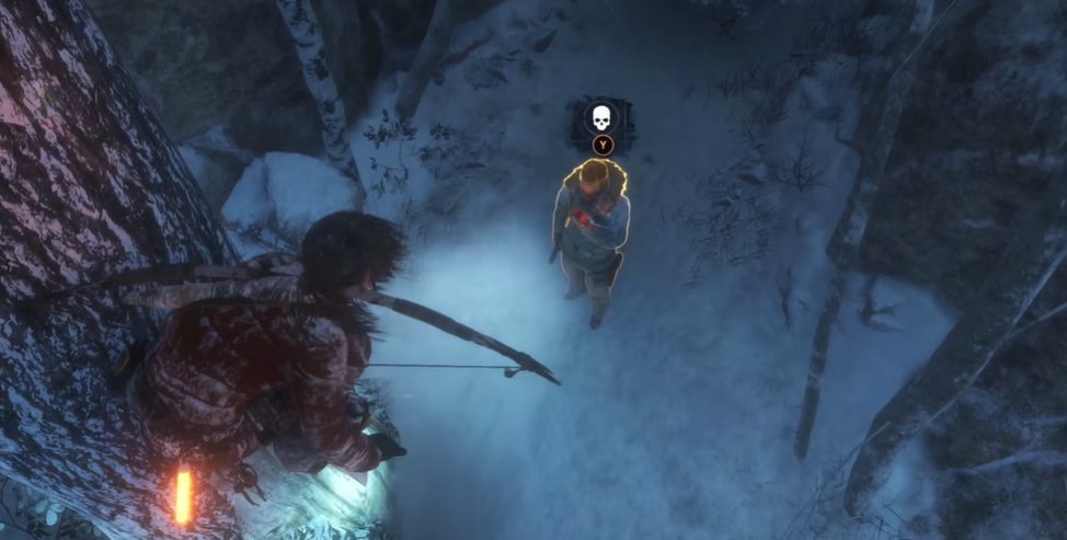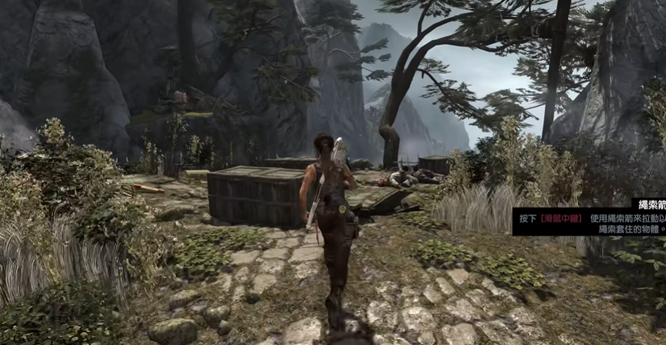 全收集要素包括主线剧情推进、支线古墓探索、文档遗物获取以及挑战任务完成。游戏中共有8个支线古墓,分布在各个地图区域,需要利用不同时期获得的工具才能完全探索。山中村落区域的挑战任务猎鬼者需要射落10个悬挂的图腾,第一个图腾位于拿取弓箭的独木桥