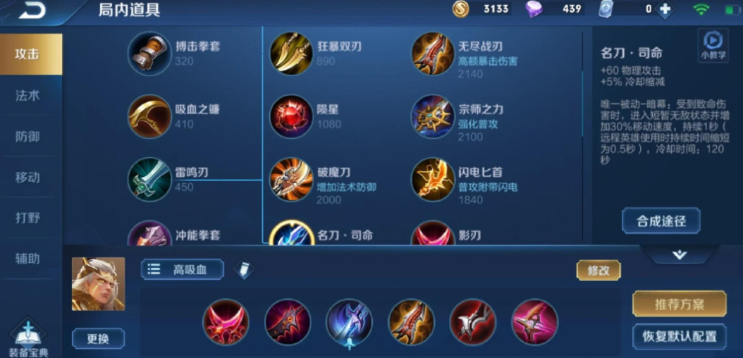 孙悟空的出装搭配,核心思路就是围绕他的暴击特性来构建装备。孙悟空天生自带20%的暴击率,但他的初始暴击效果比较低,所以出装的第一要务就是提升暴击伤害和暴击效果。出门打野的话,第一件装备通常选择追击刀锋,这件打野刀能帮你快速清野积累经济。鞋子