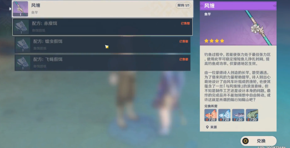 要拿到飞蝇假饵的配方,首先你得去蒙德城附近找一位名叫楠塔克的钓鱼协会NPC,他通常就在城外的湖边溜达。和他对话选择我需要一些钓鱼用品的选项,就能打开兑换界面。在这个界面里,你可以直接用三条花鳉鱼来换到飞蝇假饵的配方图纸,花鳉鱼在很多水域的钓
