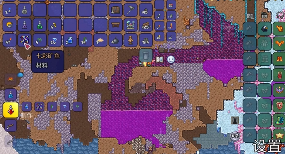 要得到七彩矿鱼,你得先进入困难模式。就是得先打败那个叫血肉墙的大家伙,世界进入困难阶段以后,这事儿才能提上日程。别一上来就兴冲冲跑去钓鱼,那肯定是钓不着的。进入困难模式后,你的世界会多出一片神圣之地,地形带着粉粉嫩嫩的颜色,背景音乐也很圣洁