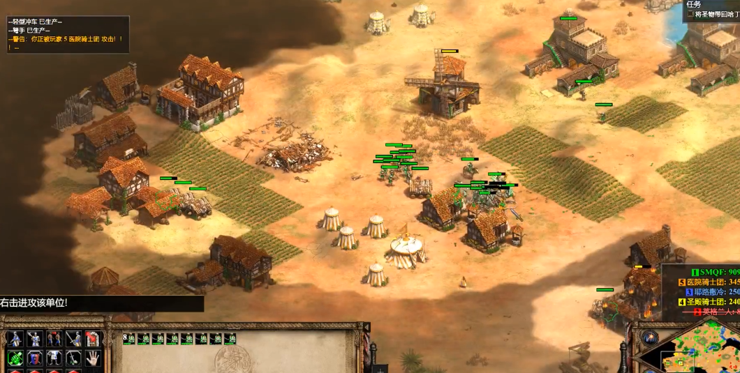 核心挑战在于资源紧张与多方敌人围攻下的策略制定,其玩法核心是灵活运用骑兵与骆驼兵的机动优势,同时注重稳固的早期防御与经济启动。玩家需要快速建立防御体系并高效管理资源,木材和黄金是早期发展的关键,应优先采集。萨拉森文明的市场交易费用极低,这为
