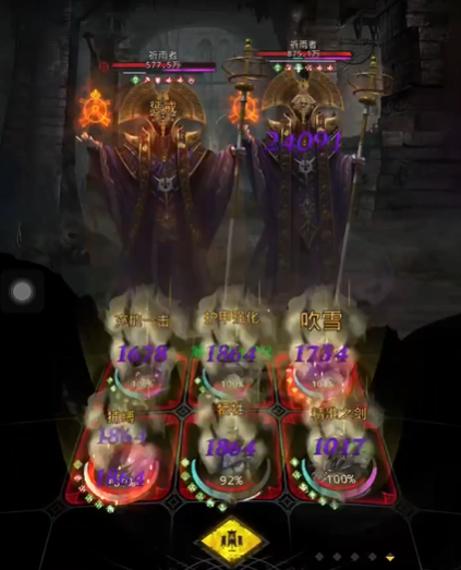 核心挑战在于应对两个祈雨者BOSS的协同攻击,它们拥有多段神圣伤害特性,受到攻击时会附加恐惧效果,主动攻击几乎必定致盲玩家角色,如果两个BOSS同时出手,队伍将面临团灭风险,必须通过精准控制打断其中一个BOSS的行动节奏,利用战吼爆发快速击