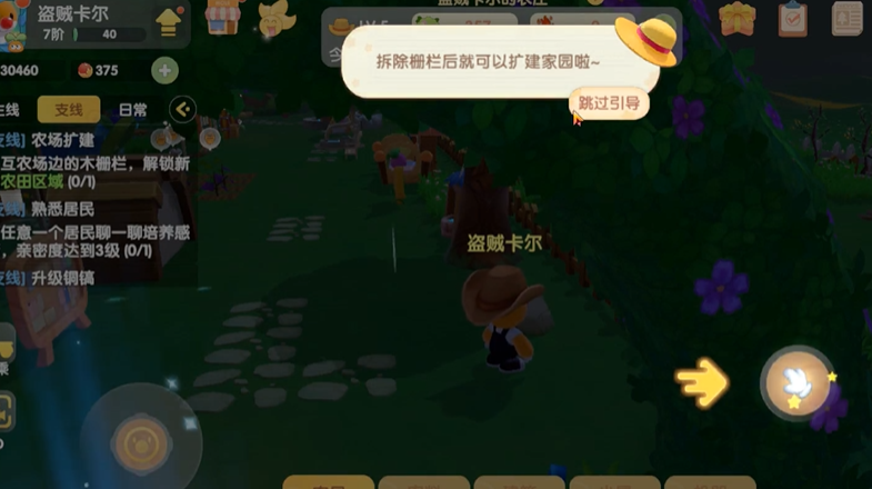 买地其实就是扩建你的家园土地,这个功能是游戏进程逐步解锁的。你进入家园后,会看到一些边缘区域是未开垦的荒地,上面通常长着杂草或者堆着石头。这些就是可以购买扩建的土地。你直接走到你想扩建的那块地旁边,屏幕上就会弹出提示,告诉你扩建这块地需要满